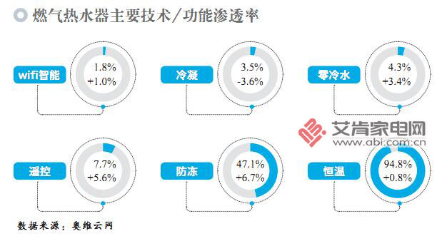 而在前沿技術(shù)中,致力于節(jié)能、環(huán)保的“冷凝”技術(shù)在2017年漸失市場(chǎng)話(huà)語(yǔ)權(quán),更貼合用戶(hù)實(shí)際需求的“零冷水”技術(shù),成為了高端燃?xì)鉄崴鞯拇硇援a(chǎn)品。官方數(shù)據(jù)顯示, 2017年以來(lái),“零冷水”產(chǎn)品的在售型號(hào)不到60款,占整體燃熱型號(hào)的1.3%,但其零售額占比卻達(dá)到5.6%,在很大程度上帶動(dòng)了燃?xì)鉄崴魇袌?chǎng)向高端化方向發(fā)展。