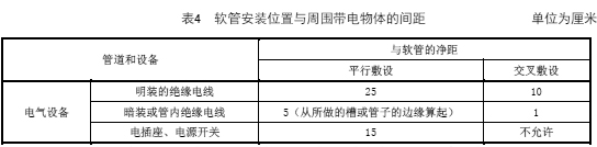 5.11 軟管安裝位置與周圍帶電物體的間距應(yīng)符合表4 的規(guī)定,當(dāng)安裝困難時,應(yīng)采取有效保護措施或適當(dāng)調(diào)整安裝路線。