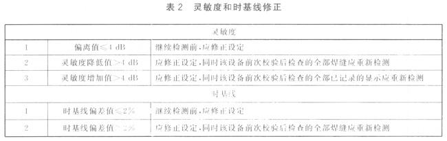 檢測過程中至少每4小時或檢測結(jié)束時,應對時基線和靈敏度設定進行校驗,當系統(tǒng)參數(shù)發(fā)生變化或等同設定變化受到質(zhì)疑時,也應重新校驗;