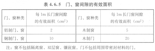 4.6.5門(mén)、窗間隙可作為部分給氣口面積,門(mén)、窗間隙的有效面積可按表4.6.5的規(guī)定取值。
