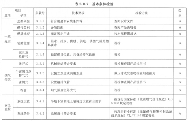 5.0.7燃具基本條件應(yīng)按表5.0.7的規(guī)定進行檢驗。