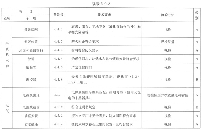 5.0.8燃具安裝應(yīng)按表5.0.8的規(guī)定進行檢驗。