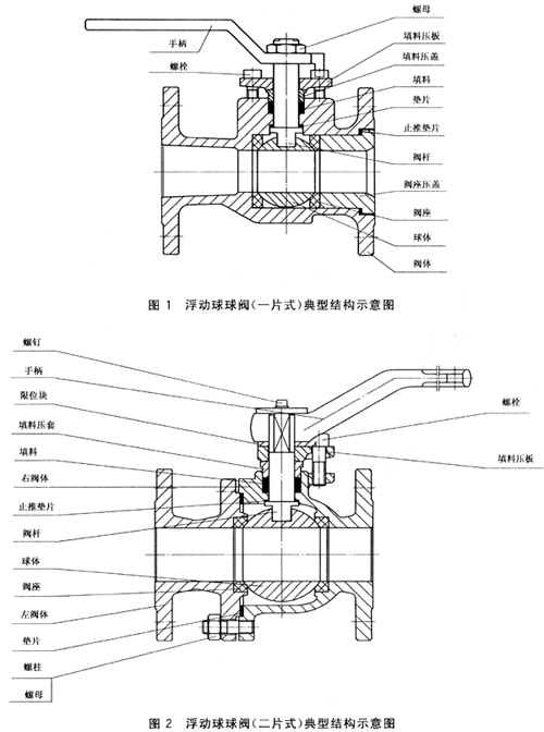 4.1 浮動球球閥(一片式)的典型結(jié)構(gòu)如圖1所示。