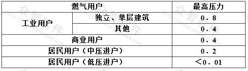 10.2.2燃?xì)夤?yīng)壓力應(yīng)根據(jù)用戶設(shè)備燃燒器的額定壓力及其允許的壓力波動(dòng)范圍確定。