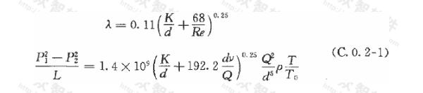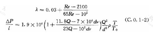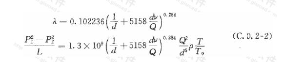 注:除附錄C所列公式外,其他計算燃氣管道摩擦阻力系數(shù)(λ)的公式,當(dāng)其計算結(jié)果接近本規(guī)范式(6.2.6-2)時,也可采用