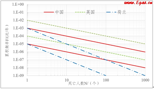 圖5 各國(guó)家地區(qū)的社會(huì)可接受風(fēng)險(xiǎn)標(biāo)準(zhǔn)對(duì)比