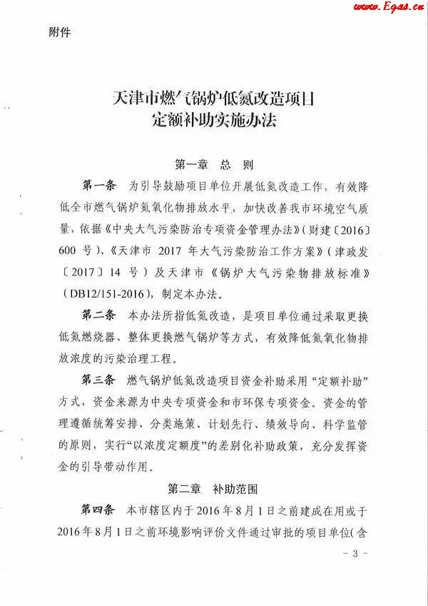 《天津市燃氣鍋爐低氮改造項目定額補助實施辦法》