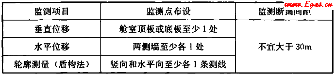 表4.4.7 矩形或圓形斷面結(jié)構(gòu)變形監(jiān)測測點布設(shè)