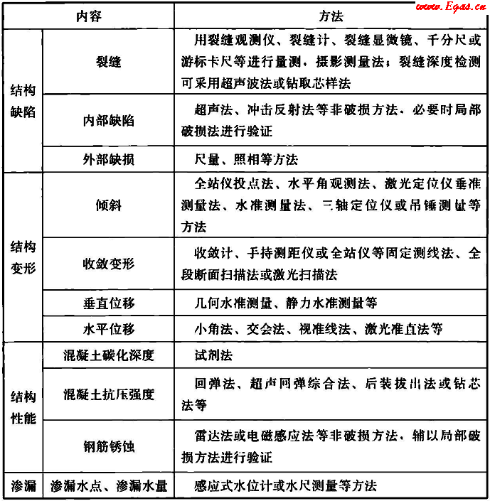 表4.4.12 管廊本體檢測內(nèi)容和方法