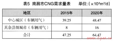 綜上,南昌市CNG需求量見表5。