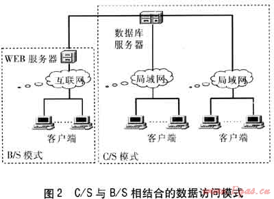 系統(tǒng)采用B/S、C/S混合架構(gòu)(見圖2),C/S與B/S相結(jié)合的數(shù)據(jù)訪問模式具有交互性好、數(shù)據(jù)處理能力強(qiáng)以及訪問速度快等特點(diǎn)。