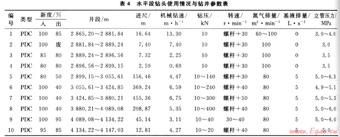 2) 在氮?dú)馀菽@井中,單只鉆頭進(jìn)尺為455.36m,平均機(jī)械鉆速為6.75m/h,創(chuàng)該地區(qū)單鉆頭水平段進(jìn)尺的紀(jì)錄。