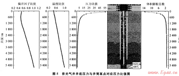 3) 普光氣田氣井,酸性氣體運(yùn)移至距地面12%(即1200m)井深時(shí),有體積膨脹趨勢(shì),運(yùn)移至距地面10%(即560m)井深時(shí)有較明顯的膨脹特征。
