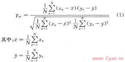 M是Yn相對(duì)于Xn的深度差(采樣點(diǎn)數(shù)差),式(2)在M<<N時(shí)適用。以M為變量,在適當(dāng)?shù)乃阉鞔伴L(zhǎng)內(nèi)變化,則當(dāng)M正好為yn相對(duì)于xn的實(shí)際深度差時(shí),計(jì)算得到的γxy應(yīng)為最大。以此反推,在搜索窗長(zhǎng)范圍內(nèi),當(dāng)計(jì)算的相關(guān)系數(shù)最大時(shí),M即為yn相對(duì)于xn的實(shí)際深度差(采樣點(diǎn)數(shù)差)。