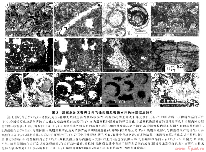 關鍵詞:普光氣田;晚二疊世;早三疊世;埋藏溶孔;巖心分析;孔隙成因;孔隙類型;識別標志