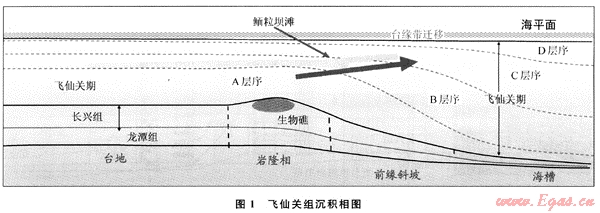 飛仙關(guān)內(nèi)部不同時期的地震層序區(qū)域空間變化反映出早期鮞粒壩灘發(fā)育帶主要應(yīng)受地震層序A頂界古地貌控制;而層序B朝深水區(qū)遷移;層序C在臺緣帶地勢較高,有利于儲層白云化,因此該期為鮞灘儲層白云巖化的關(guān)鍵期;層序D沉積時地勢趨于平緩,海水能量變低,不利于高能灘發(fā)育。