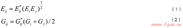 二元參數(shù)Eij,Gij的計(jì)算式為: