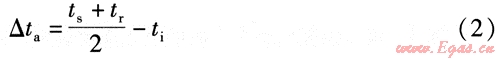 由于對數平均傳熱溫差計算比較復雜,不適合工程中的簡便計算,因此工程中普遍采用簡便的算術平均傳熱溫差[7],并得到國內外對流散熱器測試標準的采用[8、9]。算術平均傳熱溫差△ta的計算式為: