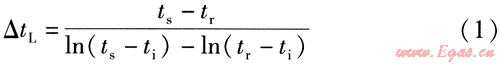對流散熱器對數平均傳熱溫差出△tL的計算式為[6]: