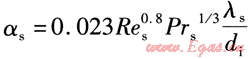 對(duì)于單相流(包括過熱氣態(tài)制冷劑、過冷液態(tài)制冷劑)管內(nèi)湍流換熱,αs采用迪圖司-貝爾特(Dittus-Boelter)關(guān)聯(lián)式表達(dá)[3]: