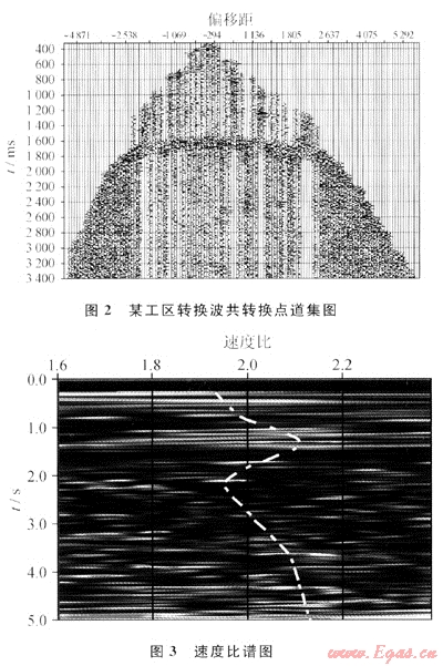 為了減少分析環(huán)節(jié)、減少轉(zhuǎn)換波速度分析初始速度比值人為給定的盲目性,提高其準(zhǔn)確性和減少誤差的積累,從而提高整體轉(zhuǎn)換波速度分析精度,筆者推導(dǎo)了只有一個(gè)輸入?yún)?shù)的轉(zhuǎn)換波二參數(shù)時(shí)距方程,發(fā)展了相應(yīng)的轉(zhuǎn)換波速度分析和動(dòng)校正方法,它基于共轉(zhuǎn)換點(diǎn)道集來(lái)分析。理論模型和實(shí)際資料處理結(jié)果表明本方法具有分析步驟少、累積誤差小、分析精度高。