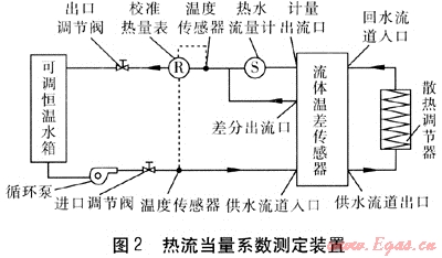熱量表是用熱量計量裝置,它關(guān)心的是供回水溫差。直接測定熱用戶供回水溫差并將其實時轉(zhuǎn)換為流量信號,可省去傳統(tǒng)熱量表計算供回水溫差、流量兩個環(huán)節(jié),簡化熱量表結(jié)構(gòu)。流差式熱量表就是基于這一思想設(shè)計的,采用流體溫差傳感器附加一塊熱水流量計,實現(xiàn)對用熱量的計量。目前,我國供熱科研人員針對我國供熱系統(tǒng)現(xiàn)狀,提出了多種供熱計量方法[1~9]。本文對流差式熱量表計量原理及熱流當(dāng)量系數(shù)的測定進行探討。