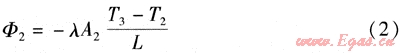 假設(shè)不考慮導(dǎo)熱桿的徑向?qū)?,根?jù)傳熱學(xué)定律,導(dǎo)熱桿的一維導(dǎo)熱量Φ2的計(jì)算式為: