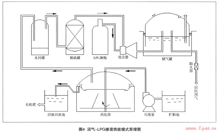 中國農(nóng)村落后、低效率的生活用能模式嚴(yán)重制約著國家能源的可持續(xù)發(fā)展,尋求適合農(nóng)村發(fā)展的高效能源利用模式迫在眉睫。本文通過分析農(nóng)村現(xiàn)有生物質(zhì)資源產(chǎn)沼氣能力和生活用能潛在需求之間的關(guān)系,指出我國大部分農(nóng)村存在沼氣發(fā)酵原料不足的問題,提出通過氣體混合裝置向沼氣中摻混一定比例的LPG,再通過管網(wǎng)輸送到用戶。