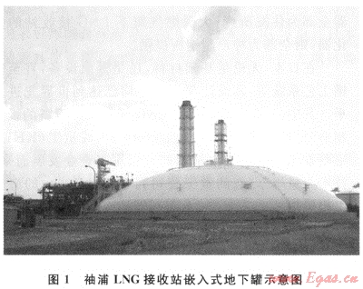 日本LNG接收站的儲(chǔ)罐,部分為地上罐,更多的是地下罐。日本這種大量采用地下罐的情況,幾乎為世界獨(dú)有現(xiàn)象,其原因可能為基于地震的安全考慮。具體的罐的類型分為:地上罐、半地下(上)罐、嵌入式地下罐、全地下罐。嵌入式地下罐為頂部或少量罐體露出地面,罐內(nèi)液體高度最高不超過(guò)地面;全地下罐為整個(gè)罐均處于地面下。地下罐的罐頂又分為兩種:拱頂形和平頂形。為保護(hù)環(huán)境景觀,地下罐周圍、甚至平頂?shù)叵鹿薜捻敳?,種植草木[6]。接收站除有LNG罐外,部分接收站還有LPG罐。