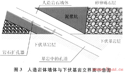 對制作“人造巖體”材料的配制比例進(jìn)行適當(dāng)調(diào)整,可以消除“人造巖體”與下伏基巖之間存在的強(qiáng)度變異系數(shù),從而減小或消除因強(qiáng)度不同形成的DL值,而且“人造巖體”四周基坑可作為泥漿存儲(chǔ)坑,從而減小了施工作業(yè)場地的占地面積。
