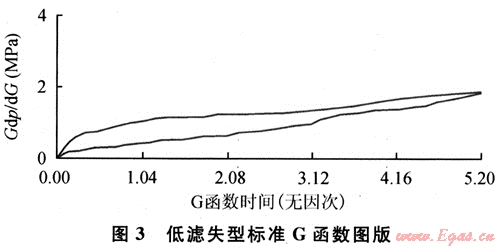其特征主要表現(xiàn)為主裂縫閉合前G函數(shù)曲線為斜直線(圖2),裂縫濾失恒定,主要表現(xiàn)為基質(zhì)濾失。