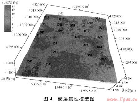 綜合利用地質(zhì)、地震和測井資料,建立精細(xì)的沉積微相模型,揭示了砂體的空間幾何展布形態(tài)。在相控基礎(chǔ)上進(jìn)行孔隙度、滲透率的研究,建立儲層屬性模型,則進(jìn)一步揭示了儲層非均質(zhì)性,指明了有利儲層發(fā)育區(qū),為進(jìn)一步的油氣田開發(fā)指明了方向。實踐證明,借助于沉積微相和屬性建模方法,使該區(qū)的新鉆井符合率有顯著提高。