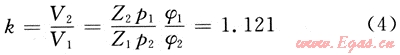 故 V2=1.121V1 (5)
