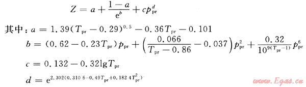 式中:ppr為擬對比壓力,MPa,ppr=p/ppr;Tpr為擬對比溫度,K,Tpr=T/Tpr;ppr為天然氣的擬臨界壓力,MPa,ppr=∑yipci;Tpc為天然氣的擬臨界溫度,K,Tpr=∑yiTci;pci為組分i的臨界壓力,MPa;Tci為組分i的臨界溫度,K;yi為天然氣中組分i的摩爾分數(shù)。