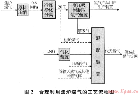 許多城市的煉焦企業(yè)都附屬在鋼鐵企業(yè)內(nèi),而且鄰近城市天然氣管網(wǎng)。如果煉焦企業(yè)、氫氣產(chǎn)品用戶與燃?xì)馄髽I(yè)能夠攜手聯(lián)合,三位一體,充分利用城市天然氣管網(wǎng)容量大的獨(dú)特優(yōu)勢,將焦?fàn)t煤氣制氫過程中的所有解析氣乃至整個(gè)煉焦(鋼鐵)企業(yè)所有可燃?xì)怏w調(diào)制成合格的代天然氣產(chǎn)品供應(yīng)管網(wǎng),那么,就可以達(dá)到焦?fàn)t煤氣各組分各盡其用、合作方共贏的目的。