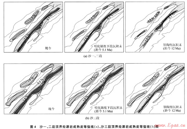 摘要:為研究渤海東北部海域遼東灣地區(qū)烴源巖的演化史,運用盆地模擬技術,在恢復該區(qū)熱演化史和埋藏史的基礎上,利用EASY%Ro計算模型對10條測線進行烴源巖成熟度演化分析,勾畫出烴源巖演化平面圖,得出遼中凹陷和遼西凹陷烴源巖的演化特征。研究結(jié)果表明:①遼中凹陷中北洼熱演化程度明顯高于南洼;②遼西凹陷北洼、南洼、中洼熱演化程度基本相同;③遼中凹陷比遼西凹陷熱演化程度高;④現(xiàn)今,遼中凹陷深部古近系沙河街組三段和沙一、二段烴源巖處于高成熟階段,凹陷邊緣處于重要生油區(qū),遼西凹陷主力烴源巖處于生油氣高峰。