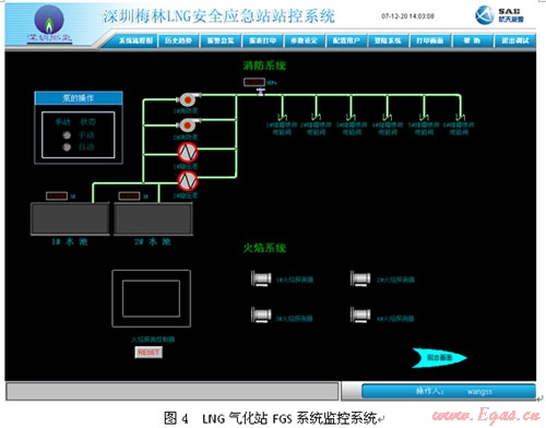 當(dāng)發(fā)生火情、危險氣體的泄漏及LNG的泄漏,以便及時采取相應(yīng)措施如隔離生產(chǎn)設(shè)備,啟動消防泵、閥,開啟泡沫或消防噴淋裝置。