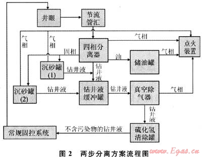 在石油天然氣鉆井作業(yè)中,對攜帶巖屑及地層流體的鉆井液進行安全高效地分離和循環(huán),是鉆井作業(yè)順利進行的前提和保障。鉆井液循環(huán)分離系統(tǒng)是實現(xiàn)鉆井液循環(huán)分離的地面裝置,按照循環(huán)分離過程是否處于密閉狀態(tài),它可分為開式系統(tǒng)和密閉式系統(tǒng)。開式鉆井液循環(huán)分離系統(tǒng),因具有配置靈活、成本低、容易操作等特點,在國內(nèi)外得到了廣泛的使用,已成為陸上鉆機系統(tǒng)的主流配置。但隨著人們HSE意識的不斷增強,這種井內(nèi)產(chǎn)物直接暴露于大氣中的敞開式循環(huán)分離方式,將會在對環(huán)境要求較高的地區(qū)(如離城市或風景區(qū)較近、人口較為集中的地區(qū))使用受到限制;此外,開式鉆井液循環(huán)分離系統(tǒng)還難以滿足在含硫地層實施欠平衡鉆井作業(yè)的需要。而密閉式鉆井液循環(huán)分離系統(tǒng)可使鉆井液在密閉條件下得到分離,分離的廢物及有害物質(zhì)得到妥善處理。這樣不僅提高了鉆井作業(yè)的HSE水平,而且還可使在含硫地層進行欠平衡鉆井作業(yè)成為可能。目前,國外數(shù)家石油公司已將密閉式系統(tǒng)應用于含硫地層的欠平衡鉆井作業(yè),并取得了預期的效果;而國內(nèi)在該領域的研究應用還是重視不夠。因此,探索和研究一套適合國內(nèi)地面裝備發(fā)展實際情況的密閉系統(tǒng)工藝流程,將具有很大的現(xiàn)實意義和工程價值。