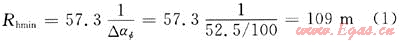 式中:Rhmin為井眼最小曲率半徑,m;△αф為全角變化率,(°)/100m。