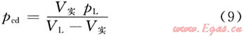 水是不可壓縮流體,則游離氣量由式(3)、(4)進(jìn)行計(jì)算。