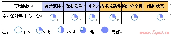 四大燃?xì)饧瘓F的項目覆蓋全國幾十個城市,同時每個項目的基礎(chǔ)條件也層差不齊,每個項目公司都有自己的獨立的流程以及每個省市都有額外的燃?xì)夤芾項l例,因此建立統(tǒng)一的呼叫中心平臺在目前來說還不可實現(xiàn)?,F(xiàn)在的現(xiàn)狀是每家公司各自為政,擁有的自己的熱線中心,從簡單的幾部電話到專業(yè)的呼叫中心平臺,擁有專業(yè)呼叫中心平臺的數(shù)量大概只占所有項目的15%左右。目前四大燃?xì)饧瘓F呼叫中心的狀況比較類似,幾乎都在一條水平線上,所以可以用如下的表格統(tǒng)一代表四大燃?xì)饧瘓F的呼叫中心水平: