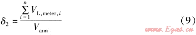 令全年燃?xì)馄骄鶞囟萒av=Tmeter,并將式(8)代入式(9),則δ2的近似計算公式為: