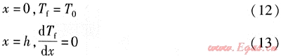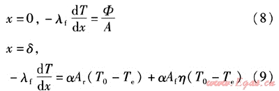 對于肋端絕熱的邊界條件為: