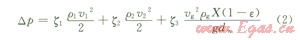 式中ρg為除塵器內(nèi)條件下的氣體密度,kg/m3;口為氣體在除塵器內(nèi)的平均流速,m/s。