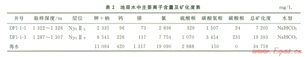 超高溫中央底辟帶的東南區(qū)黏土礦物以綠泥石、伊利石為主;東方區(qū)、樂東區(qū)雖然以伊/蒙混層、伊利石為主,但在熱流體活躍層段出現(xiàn)高嶺石、綠泥石含量異常,如東方區(qū)和樂東區(qū)l 500 m上下出現(xiàn)高嶺石含量增高、綠泥石含量降低異常層段,這是由于大量的C02隨著熱流體從深部向上運移,在中淺層聚集,并溶于水中,碳酸根含量增加,隨后碳酸釋放出H十,使地層水呈酸性,促使綠泥石向高嶺石轉(zhuǎn)化的結(jié)果。另外在熱流體作用下,出現(xiàn)蒙脫石向伊利石轉(zhuǎn)化突變異?,F(xiàn)象,如靠近斷裂的DFl-1-2井(圖3)在1 200~1