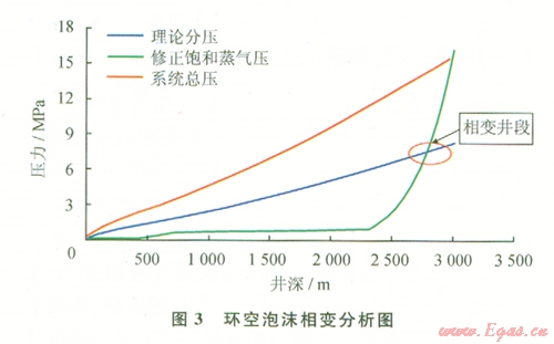 1)在鉆進過程中,如果泡沫流體相態(tài)發(fā)生變化,其密度等參數(shù)將發(fā)生變化,直接影響井底壓力的推算,并且導(dǎo)致井筒流體流態(tài)及工況參數(shù)改變,可能導(dǎo)致井下復(fù)雜情況的出現(xiàn)。