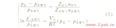 對于空氣和水蒸氣組成的混合氣體,可以采用分壓定律來研究。由分壓定律可知,混合氣體形成的總壓等于空氣的分壓與水蒸氣的分壓之和,而各組分的分壓等于各組分所占的摩爾質(zhì)量分數(shù)與該系統(tǒng)中氣相的總壓的乘積。