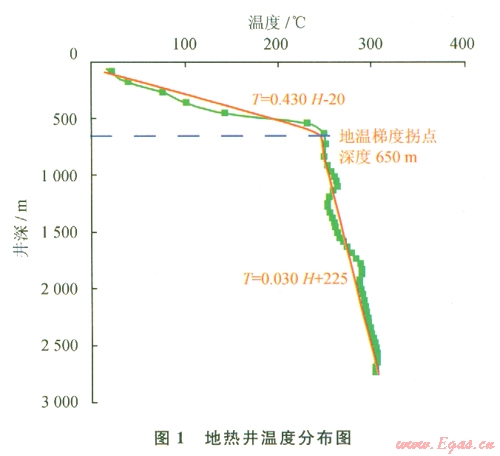 如圖l所示,根據(jù)該地區(qū)某井實測地溫數(shù)據(jù)擬合結(jié)果,將地熱井地層地溫梯度簡化為0~
