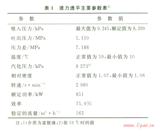液力透平的主要參數(shù)見表l。