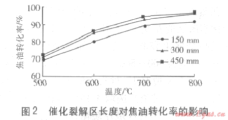 ①催化裂解區(qū)長度對焦油轉(zhuǎn)化率的影響